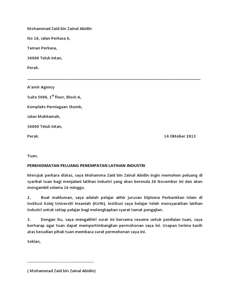 Contoh Surat Permohonan Kerja Yang Ringkas Letter 7saudara Com